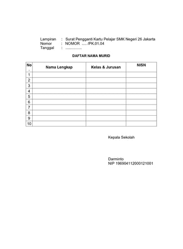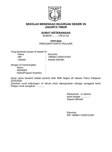 CONTOH TEMPLATE SURAT PENGGANTI KARTU PELAJAR